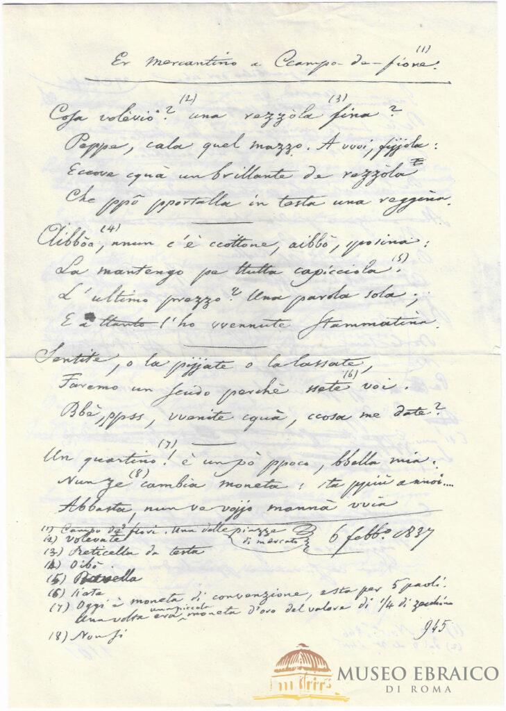 Bozza della poesia “Er mercatino a campo de fiori” e appunti di Crescenzo Del Monte