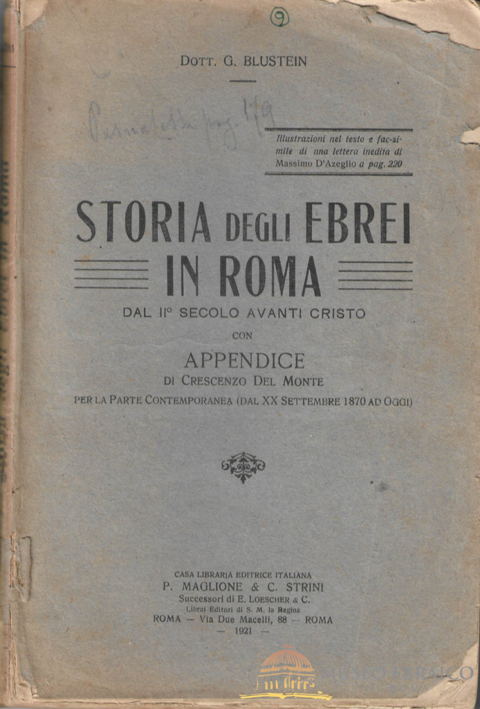 Libro “Storia degli ebrei in Roma” con correzioni a mano di Crescenzo Del Monte